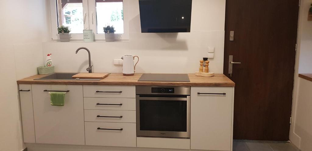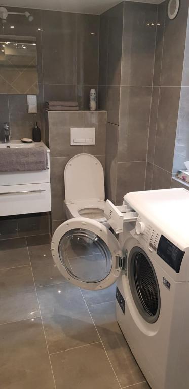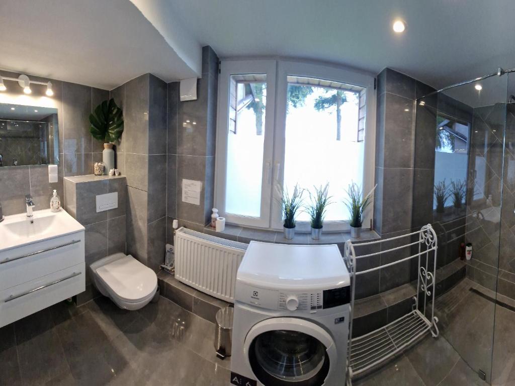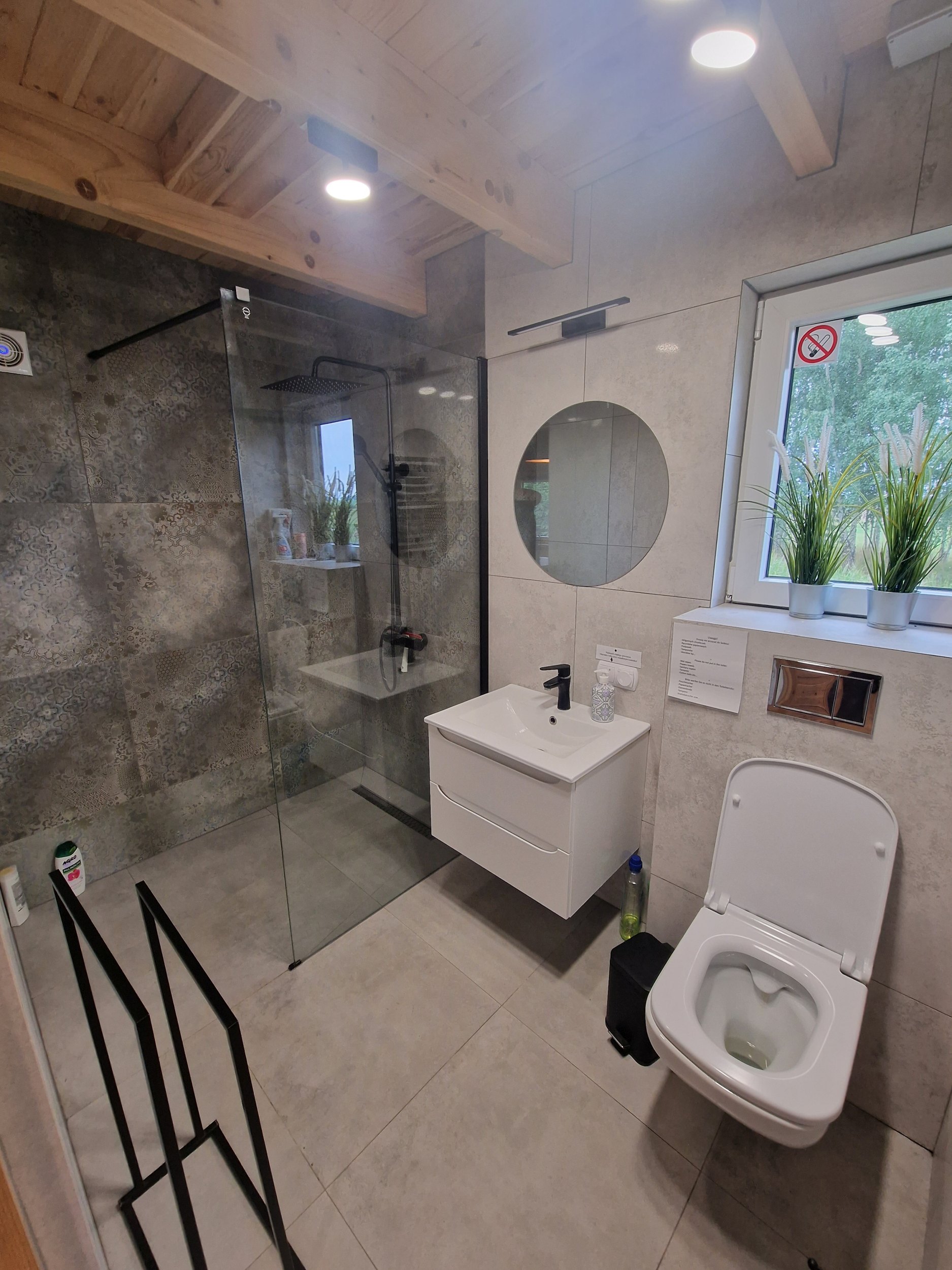 Podczas pobytu w naszym domu wakacyjnym będziesz mógł/mogła cieszyć się wygodą i prywatnością. Oferujemy przestronny taras, 2 przytulne sypialnie oraz elegancko urządzony salon z telewizorem z płaskim ekranem. W pełni wyposażona kuchnia, w tym lodówka i zmywarka, pozwoli Ci na przygotowanie ulubionych dań. W łazience z prysznicem znajdziesz wszystko, czego potrzebujesz. Z tarasu rozpościera się widok na nasz malowniczy ogród, który zapewni Ci chwilę relaksu.
