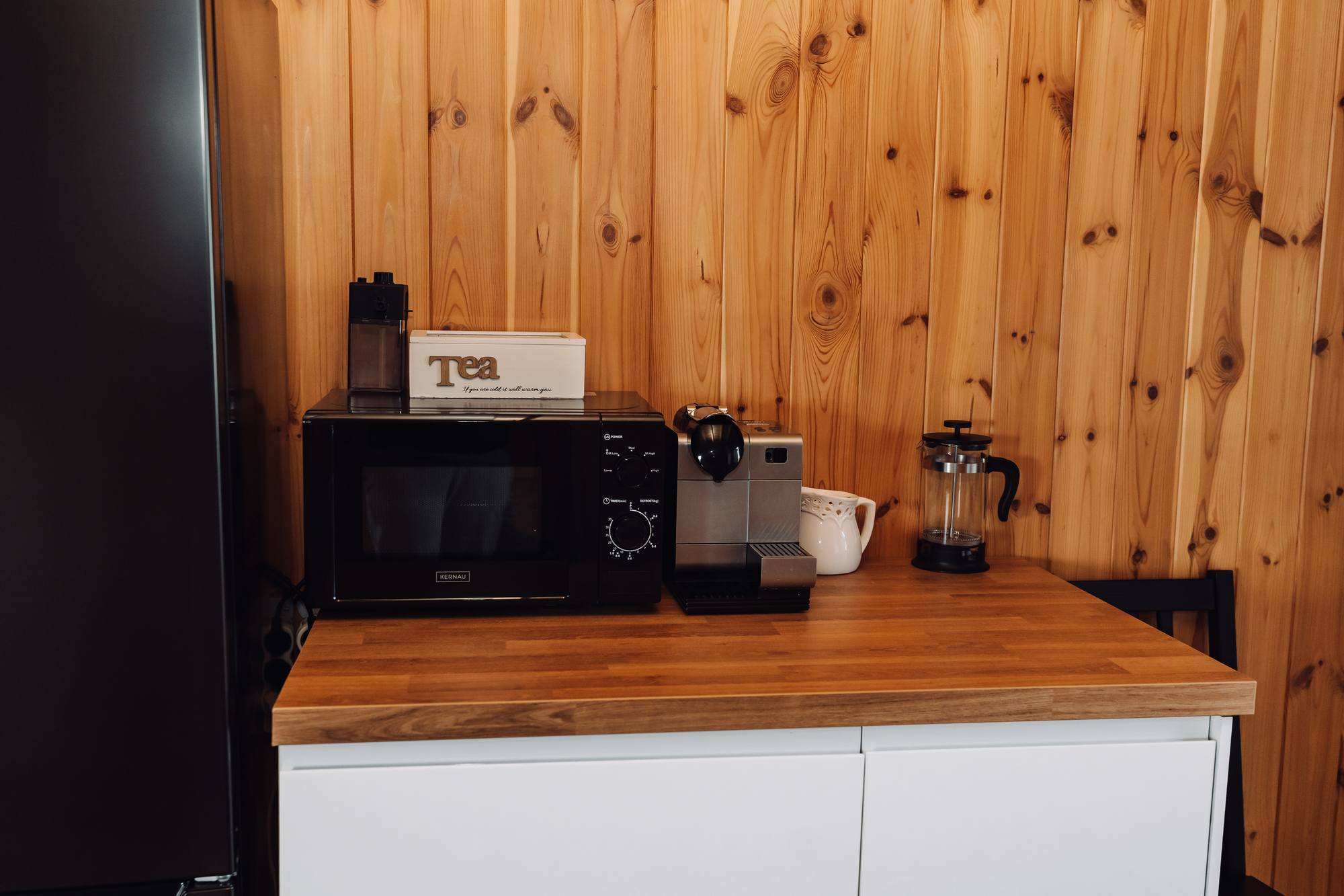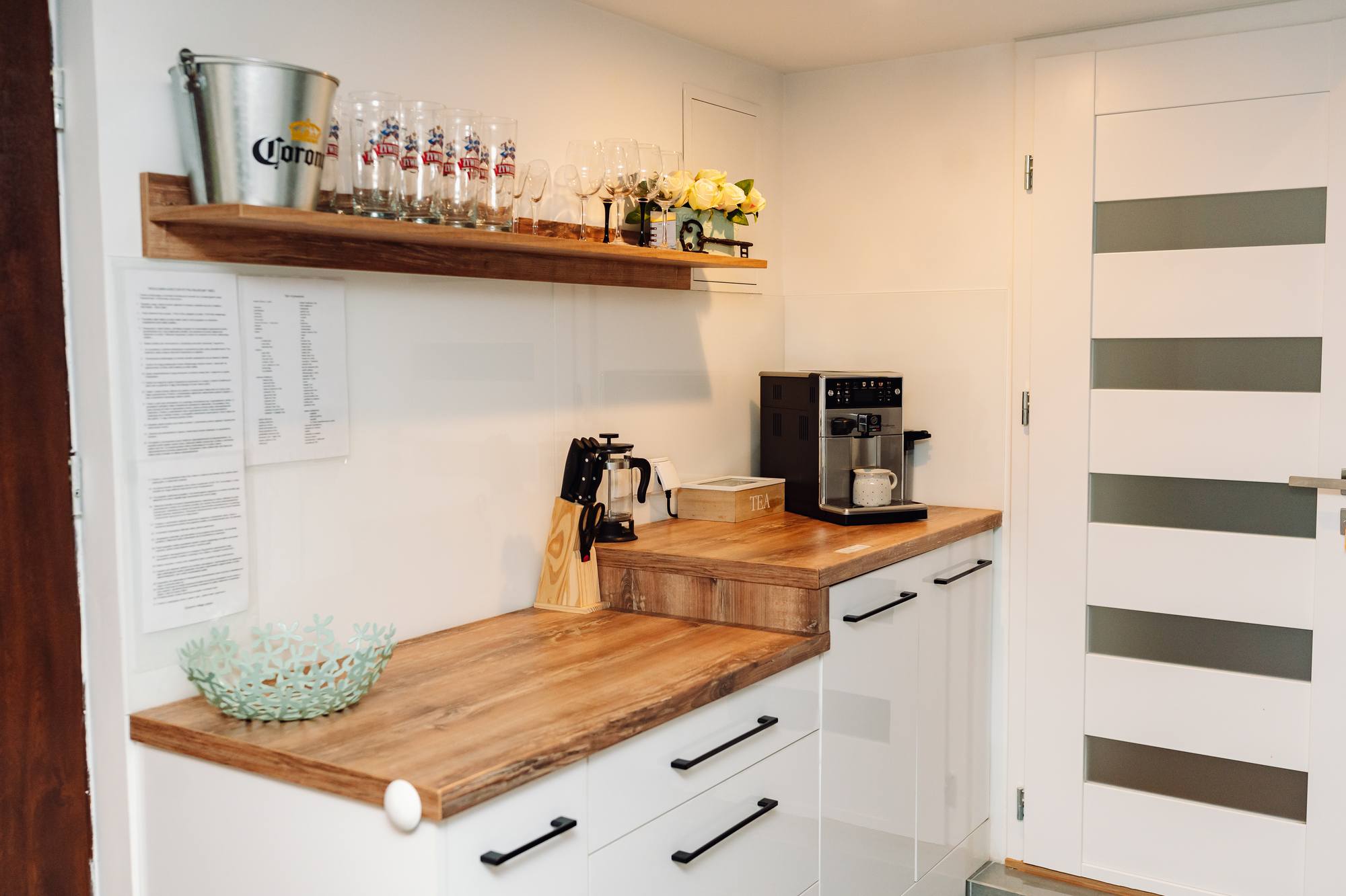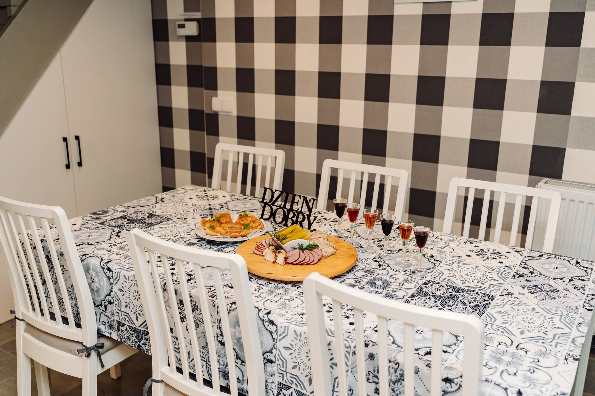Wnętrze domu wakacyjnego zapewnia pełen komfort i wygodę. Goście mają do dyspozycji dwie przytulne sypialnie, a także telewizor z płaskim ekranem, który umili wieczory spędzone w przyjemnej atmosferze. Kuchnia zaopatrzona jest w pełne wyposażenie, w tym lodówkę, zmywarkę, pralkę, piekarnik oraz nowoczesną płytę kuchenną, co pozwala na swobodne przygotowywanie posiłków. Ręczniki oraz pościel są również zapewnione, co znacznie ułatwia pakowanie i organizację podróży.