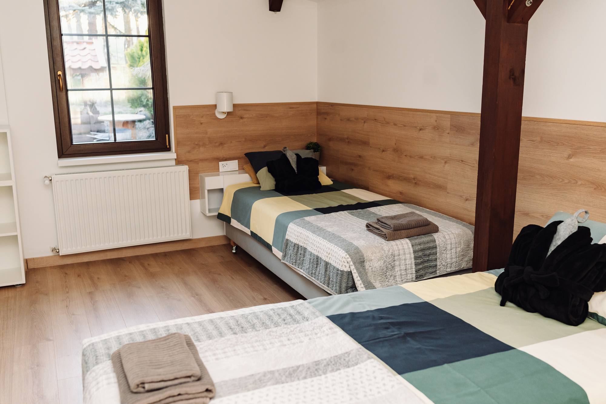 Twoje wygody są dla nas priorytetem, dlatego zapewniamy świeże ręczniki oraz pościel. Dla miłośników relaksu oferujemy również dostęp do naszej sauny, która pozwoli Ci odprężyć się i zregenerować siły.